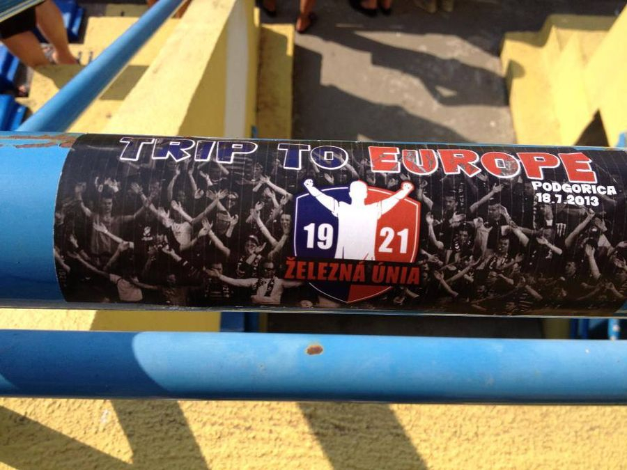 Do Čiernej Hory vycestoval jeden zaplnený autobus senických fanúšikov, ktorí sa združujú v občianskom združení Železná únia. Výjazd zaplatil majiteľ klubu Vladimír Levársky, ako poďakovanie Železnej únii za pôsobenie v jarnej časti minulej sezóny. Do hlavného mesta dorazili Seničania v predstihu a ihneď obsadili bar pri štadióne. “Na tribúnu sme sa dostali hodinu pred výkopom, pričom sme bojovali s neskutočnou páľavou (na slnku bolo dobrých 40 stupňov) na slnečnej tribúne. Rozvešali sa vlajky, polepili nálepky, naladil bubon a mohlo sa začať,” opisujú Seničania začiatok zápasu na svojej Facebook stránke.