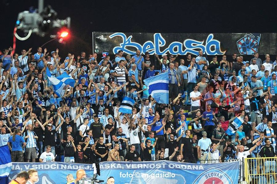 Belasí sa na zápas zmobilizovali a Slovan hnal niekoľkostočlenný kotol. “Už predzápasový ruch v okolí Pubu u Belasých dával tušiť, že návšteva bude vyššia ako sme zvyknutí. Výsledok pozitívnej vlny šíriacej sa Bratislavou a okolím bolo cítiť na každom kroku. Solídne zaplnený kotol šlapal ako hodinky, škoda len že sa viac nezapájali tribúny, ktoré tiež boli utešene ľudnaté. Ale tak nemôžeme chcieť všetko naraz… Približne v 20.minúte sa nad kotlom objavila “maketa” nášho svätostánku na Tehelnom poli v podobe chorea o ploche 200 m², ktoré zaslúžene zožalo aplauz všetkých tribún,” opísali predzápasový priebeh a momentky z tribún slovanisti na svojej oficiálnej stránke. “Veľkým pozitívom kotla je, že aj napriek nepriaznivému stavu vie fandiť rovnako dobre a včera sa to opäť potvrdilo! Ľudia sa zabávali počas celého zápasu, aj za stavu 0:1 či po vylúčení Grendela. Záverečné minúty boli čistá psychiatria a následná eufória nepotrebuje žiadny komentár,” dodali belasí na záver.