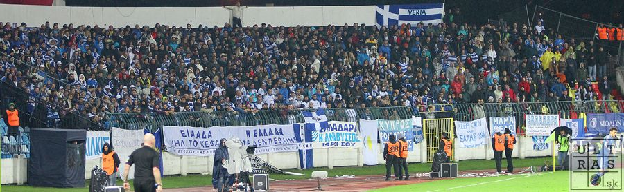 Ako doma sa však mohli cítiť najmä Gréci, ktorých prišlo podporiť zhruba 800 rodákov. Od začiatku zápasu hnali svojich dopredu a po strelenom góle úplne ovládli tribúny a ich support dominoval do konca zápasu.