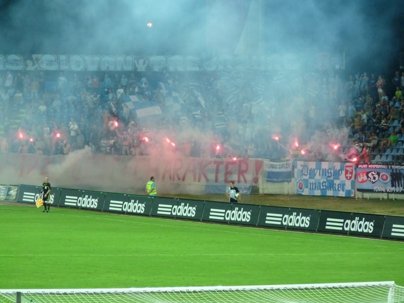 Slovanisti dali na tomto zápase jasne najavo, že s poslednými výkonmi hráčov nie sú spokojní. Na plote sa objavili transparenty “Slovan pre nás L♥VE, pre vás LOV€?” a “Pokora+Česť+Charakter”. Hráči si ich výzvu zobrali k srdcu a deklasovali súpera. Na tribúnach sa následne objavilo aj pyro. Hostia dorazili v počte zhruba sto fanúšikov.