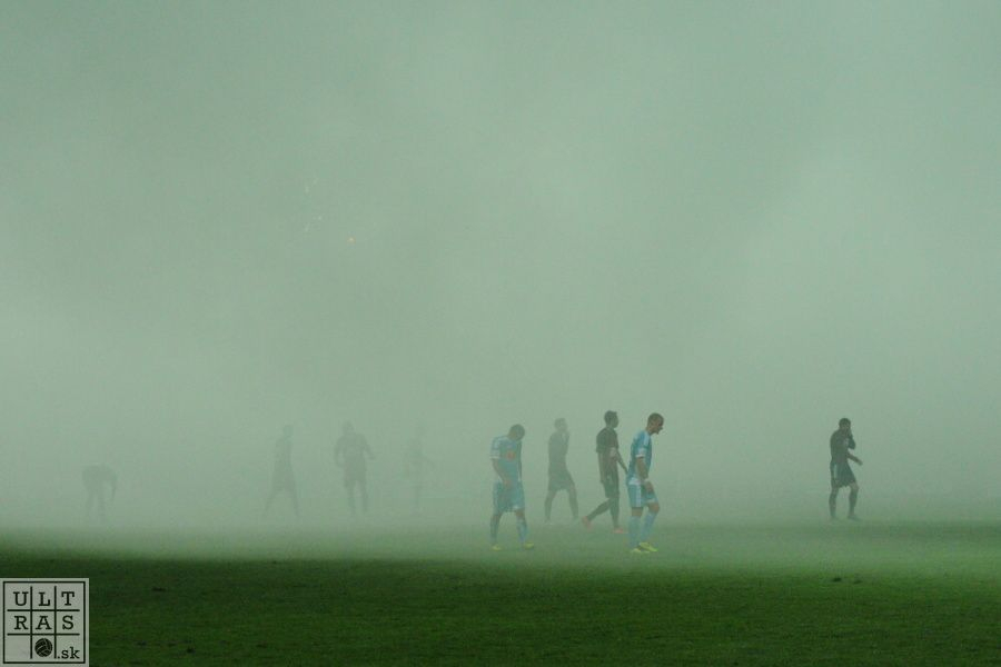 Najväčšie slovenské derby medzi Slovanom Bratislava a Spartakom Trnava odohrané v rámci 15. kola muselo byť prerušené kvôli pyrošou domáceho tábora: