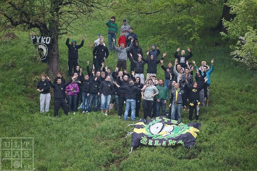 Počas májového finále Slovenského pohára v Bardejove sa časť žilinských priaznivcov nedostala k lístkom do sektora a povzbudzovala z priľahlého lesíka: