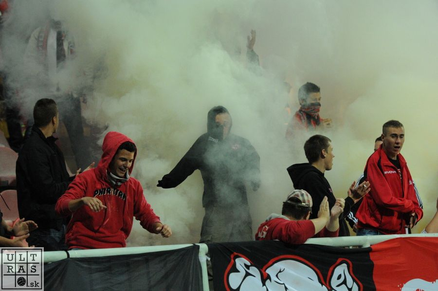 Najlepšiu atmosféru pripravili svojim futbalistom priaznivci Trnavy. Solídny support, okorenený pyrom, do toho bubny, vlajky… Aj priemerné počty Ultras Spartak sú na slovenskej scéne nadpriemerné.