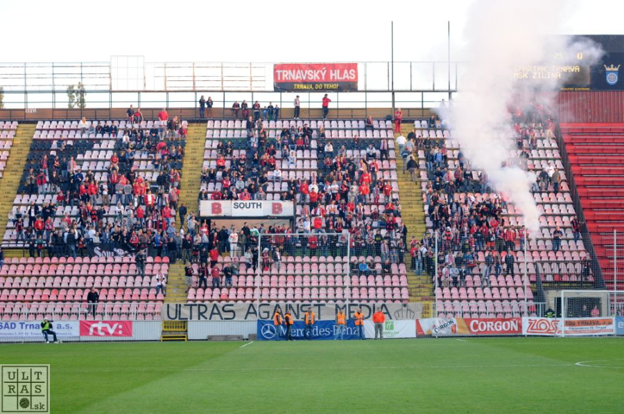 Šlágrom 13. kola mal byť zápas medzi Trnavou a Žilinou. Žlto-zelených sa chystala podporiť aj početná skupina Žilinčanov, najmä z radov tých, ktorí domáce zápasy dlhodobo bojkotujú. Ešte počas týždňa však žilinskí klub poslal do Trnavy oficiálny list, v ktorom vystríha pred údajnými chuligánmi. Na základe toho sa rozhodol Spartak nepredávať lístky do sektora hostí priamo na mieste a bolo ich možné dostať iba od žilinského klubu. Žilinčania sa tak nakoniec v sektore hostí neobjavili, za to sa objavilo niekoľko stoviek mužov zákona, ktorí si bezcieľne postávanie skracovali pojedaním kebabov. Domáce rady sa oproti minulým zápasom značne preriedili, stále je to však na slovenské pomery nadpriemer. Nechýbalo pyro a transparenty smerované k bulvárnym médiám a ich štýlu informovania o fanúšikoch.
