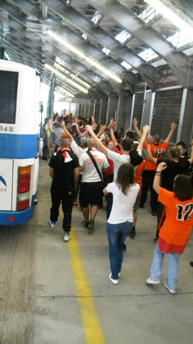Hostia sa napriek prehre bavia vo svojom sektore, po zápase im však hráči iba z diaľky ďakujú a nereagujú ani volanie svojich priaznivcov.