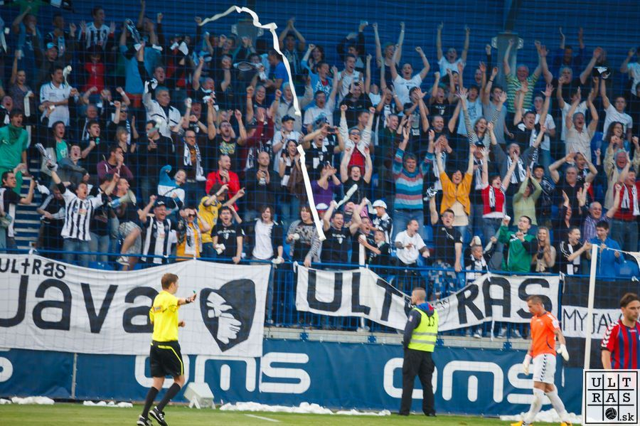 Ružomberčania hlásia ku koncu sezóny vyhasínanie spôsobené aj podporou ženského basketbalu. Aj kvôli nemu sa nestihli pripraviť na Trnavu možno tak ako chceli. “V piatok večer do sektoru inštalujeme audio sústavu, na podnet mŕtveho megafónu, ktorý nám tak zostáva na výjazdy. V sobotu doobedu sa schádzame šiesti a pripravujeme choreografiu – remake obojručiek na mávacie vlajky… V prvom polčase sa náš sektor rozbieha veľmi ťažko, a prvých 15 minút majú v hľadisku miernu prevahu hosťujúci fanúšikovia, ktorí sa na Liptov vydali v počte cca 120, a uskutočnili tak druhý najpočetnejší výjazd do sektoru hostí v Ružomberku v tejto sezóne (mimochodom, ten najpočetnejší tiež patril spartakovcom, keď v jeseni ich prišlo 217) a zároveň najväčší na jar. Plot majú ovlajkovaný prevažne divíznymi vlajkami. Do polčasu však Géčko preberá iniciatívu, v ktorej nám pomáha aj čoraz mŕtvejší kotol Spartaka,” opisujú zápas Ružomberčania.