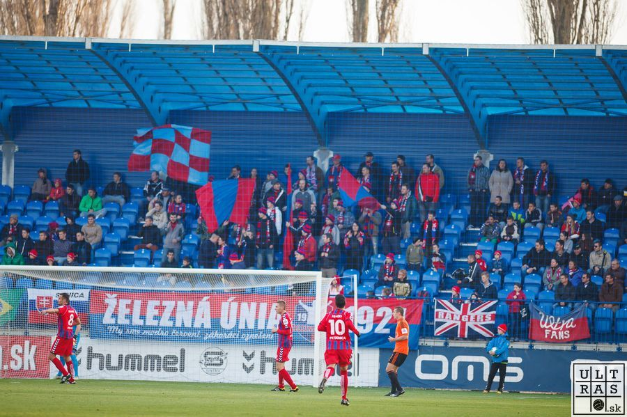Najvyššia divácka návšteva kola s prítomnosťou obidvoch táborov. Domáci si pripravili transparent “Arsenal musí žiť”, v ktorom vyjadrili podporu krachujúcemu ukrajinskému mužstvu Arsenal Kyjev. Ten je známy antifašistickou fanúšikovskou základňou. Na záver zápasu poďakovali hráčom za jesenné výkony, vzhľadom k tomu, že AS Trenčín je na druhom mieste. Prítomná bola aj tridsiatka Košičanov, ktorá sa musela prizerať potupnej prehre. V galérii prikladáme aj jednu z prezentačných fotiek Košičanov.