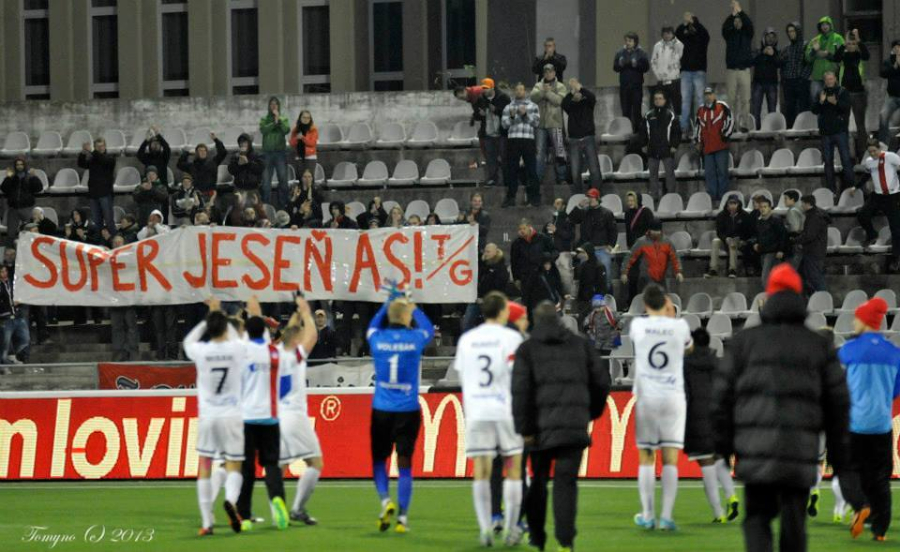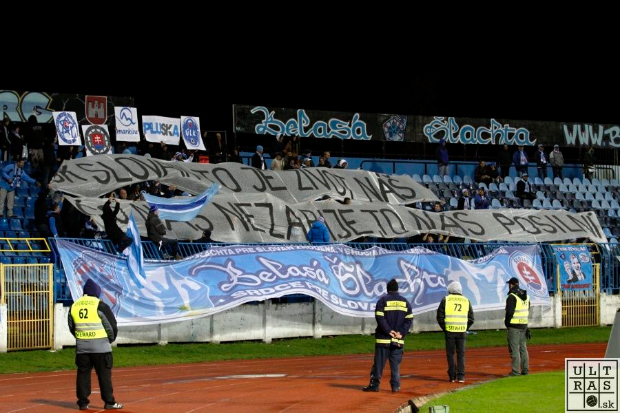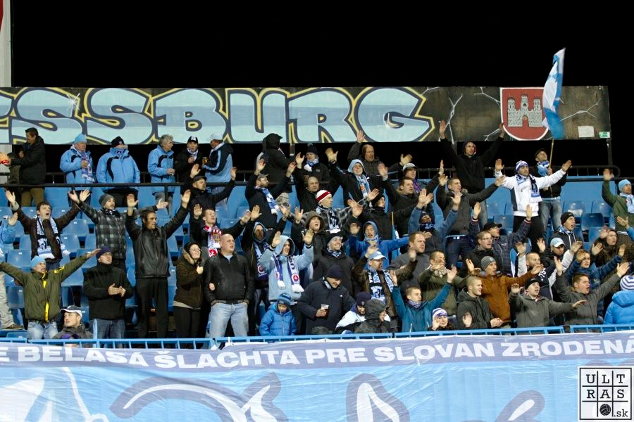 Na jesenného majstra bolo zvedavých ani nie tisíc divákov, atmosféru zachraňovala Belasá šlachta. Tí si uctili transparentom pamiatku zosnulého fanúšika z vlastných radov. Taktiež vyjadrili názor na súčasnú situáciu choreom “ŠK Slovan to je život náš, čo nás nezabije to nás posilní.” Prítomní boli aj hostia, zhruba dvadsiatka z oficiálneho fanklubu Šošoni 1908.