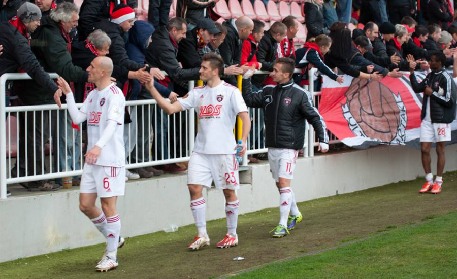Ľudoprázdne tribúny boli aj v Nitre. Domáci sformovali kotlík v ktorom bolo niečo cez 10 ľudí a sem-tam povzbudili svoj tím, hlavne za víťazného stavu. Dorazila aj tridsiatka hostí, za zmienku stojí najmä posledných 20 minút zápasu z ich strany, keď napriek prehre povzbudzovali svoj tím. Na tribúnach sa prejavil aj volebný deň, keď sa oba tábory privítali prekrikovačkou Marian-Kotleba.